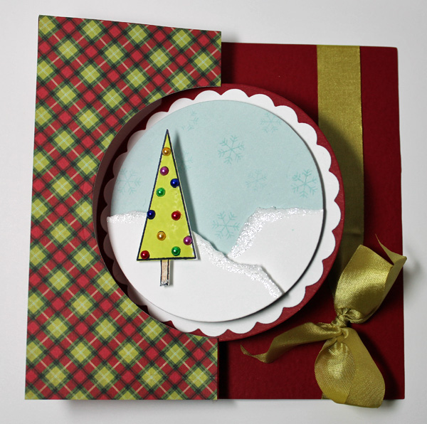 My card is made with joy2Christmas, a circle flip-it die, circles, scalloped circles, and stars, Stephanie's Artichoke and Licorice Clearsnap Colorbox inks, Echo Park designer paper, and lots of little pearls.  For some reason these greens and reds really freaked my camera out.  IRL they match much more closely!